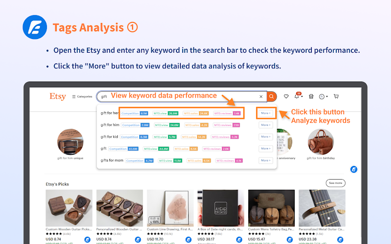 - Etsy seller tools provide essential data on keyword performance, helping sellers understand which terms are driving traffic to their listings. By analyzing keyword data, sellers can optimize their product titles and descriptions for better visibility in search results.
