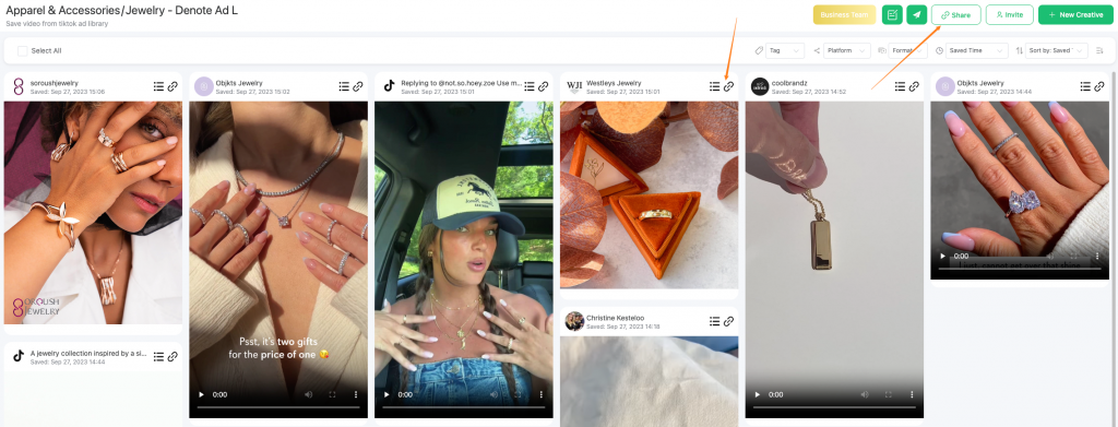 Furthermore, Denote isn't limited to saving ads from the Facebook Ad Library. It also allows you to save ads from the TikTok Creative Center. This makes Denote a versatile platform for collecting ad inspiration, generating ideas, and collaborating with your creative team. Give it a try and explore its full potential!
